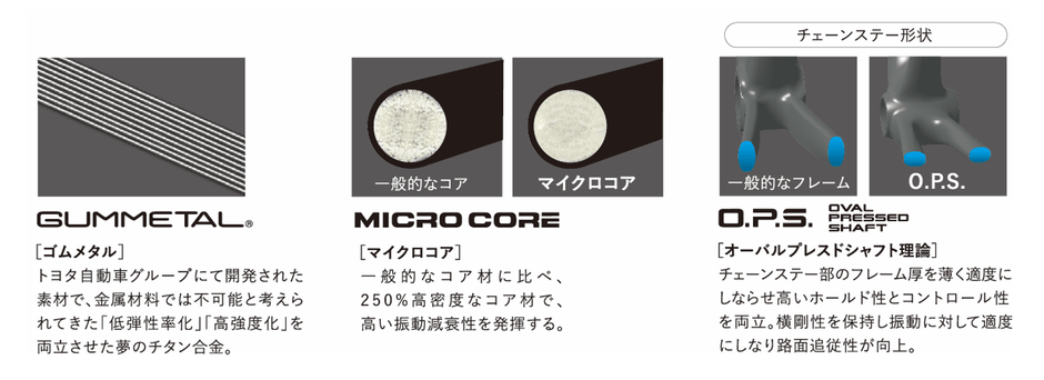 本来両立させることが困難な「弾性率」と「強度」を高い次元で兼ね備えた新カーボン繊維。高剛性基材をフォーク・チェーンステーに搭載することで、変形による剛性バランスを調整するとともに加速性が向上。