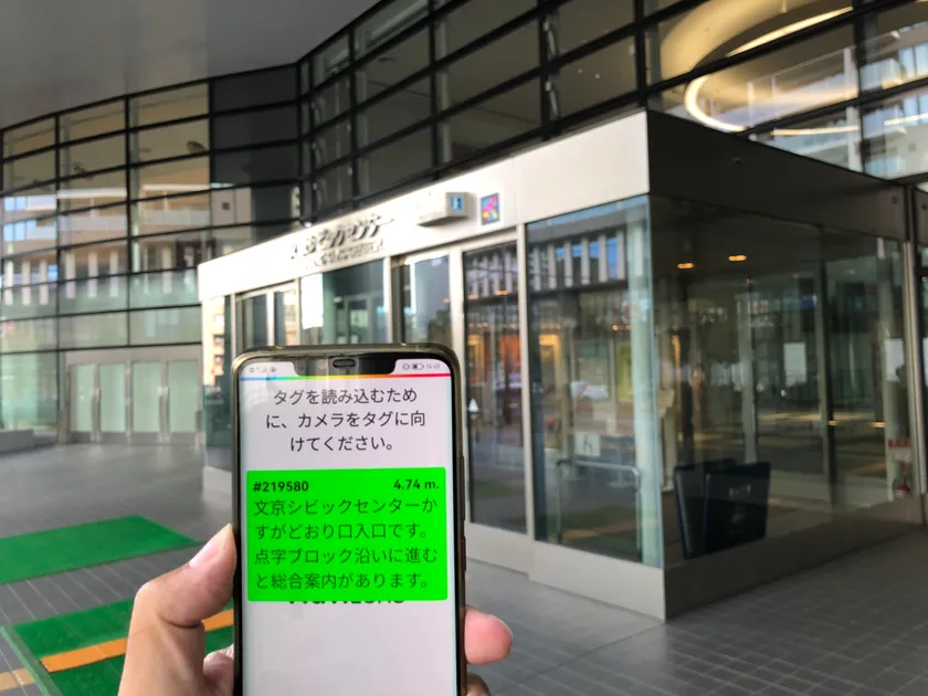 この「ナビレンスを活用した視覚障害者の移動支援事業」は、文京区役所、ホールなどがある文京シビックセンター各所に視覚障害者の移動をサポートする説明文を組み込んだ二次元コードを貼り、視覚障害者向けアプリNaviLens(ナビレンス https://www.navilens.com/ja/ )を用いて、人流が多い場所でもスムーズに移動できるか検証します。