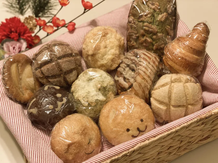 数量限定の当店のおすすめを厳選しております。内容に関しては、あおさとしらすチーズパン、ローズマリーふぉかっちゃ、シナモンロール、めろんぱん、ニャンコロパン、にゃんチョコカスタードパン、黒豆パウンドケーキ、そしてお任せ4種類の計11個入となっております。(4,500円~5,000円相当)
