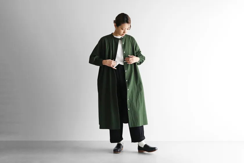 遠州産地は現在、アパレル業界における高級シャツ生地の産地として知られています。中でも、HUISが用いる「旧式のシャトル織機」でゆっくりと時間をかけて生まれる生地は、使い込むほどに風合いが増す“育つ生地”と呼ばれ、着る人の五感に幸せを運びます。