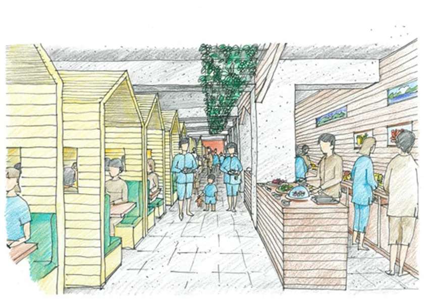 臨場感とわくわく感を感じてもらうため、ライブキッチンに生まれ変わります。シェフが調理しているところをリアルに見ることでき、出来立ての料理を提供します。