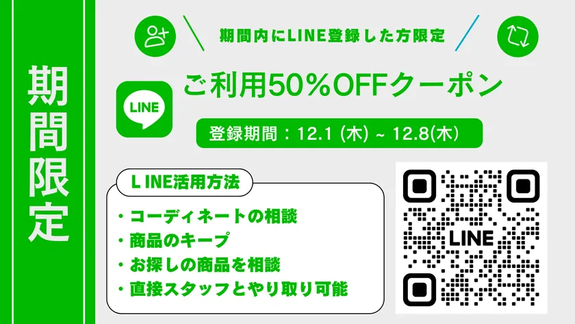 12月8日(木)までにLINE登録いただいた方にクーポンを配布