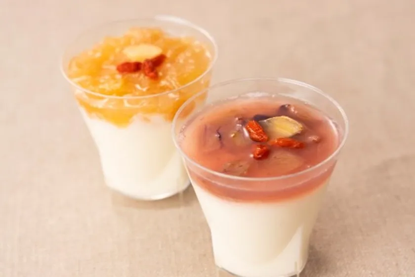 *規格外フルーツのジャムをたっぷりのせた、環境にもからだにも優しい「甘酒パンナコッタ」
