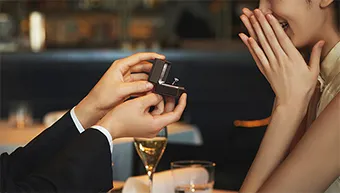 思い出の場所や素敵なレストランで、婚約指輪を渡して思い出に残る感動のプロポーズを。