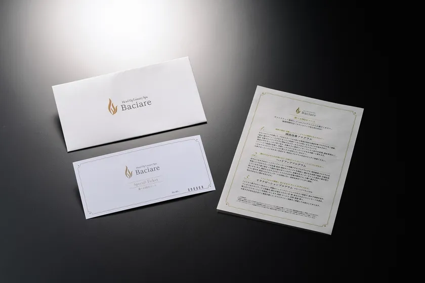 Baciare(バチャーレ)のギフトチケットは、「選べる90分コース」と「選べる45分コース」の2種類ですが、各チケットには3つのプログラムメニューがあります。利用者が、その時の体調や改善要望などに合わせてメニューを選ぶ楽しみがあり、ご希望の施術が受けられます。贈り主の細やかな心遣いが伝わるギフトチケットです。