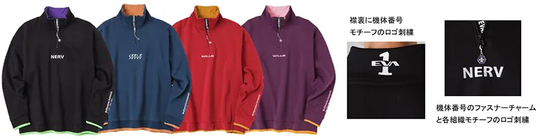 ■ 『EVANGELION』 ハーフZIPスウェット 各¥4,389(税込)