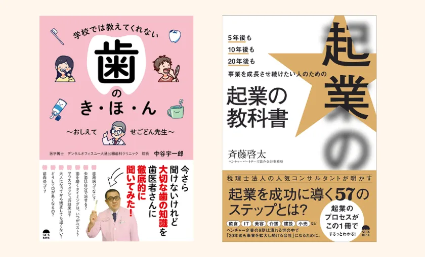 サンライズパブリッシング株式会社(所在地:東京都渋谷区、代表取締役:西潟 洸徳、以下 サンライズパブリッシング)は、札幌市中央区「デンタルオフィスユー大通公園歯科クリニック」中谷 宇一郎院長による著書『学校では教えてくれない歯のき・ほ・ん~おしえて せごどん先生~』、ベンチャーパートナーズ株式会社(本社:札幌市中央区)斉藤 啓太執行役員による著書『5年後も10年後も20年後も事業を成長させ続けたい人のための起業の教科書』の2冊を12月2日(金)に発売します。