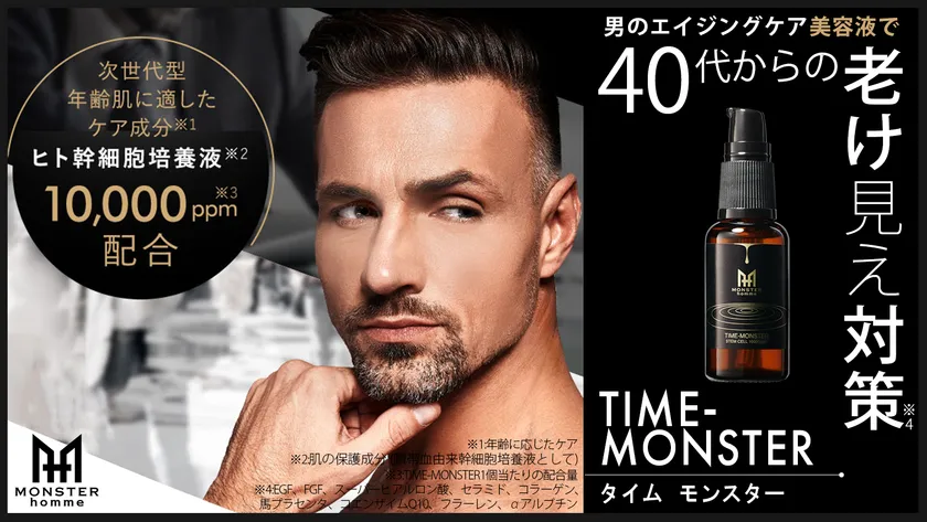 40代からの老け見え対策!男のエイジングケアを叶える美容液 「タイムモンスター」をMakuakeにて12/27より先行販売開始!