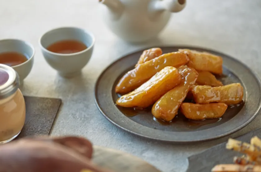 蜜たっぷりの甘じょっぱい、昔懐かしい大学芋。蜜には地元名産の日光醤油を使用することで、日光醤油ならではの自然な甘みが感じられる上品な美味しさに。できたてがより美味しいため、お早めにお召し上がりください。