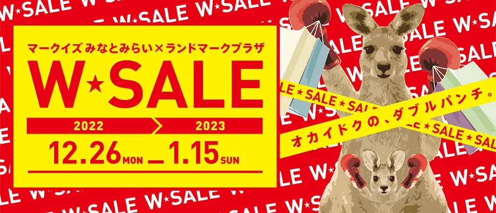 MARK IS みなとみらいと横浜ランドマークタワー内ランドマークプラザ(神奈川県横浜市/運営:三菱地所プロパティマネジメント株式会社)は、2022年12月26日(月)~2023年1月15日(日)の期間中、「MARK IS みなとみらい×ランドマークプラザ W★SALE」と題し、合同で新春セールを開催いたします。