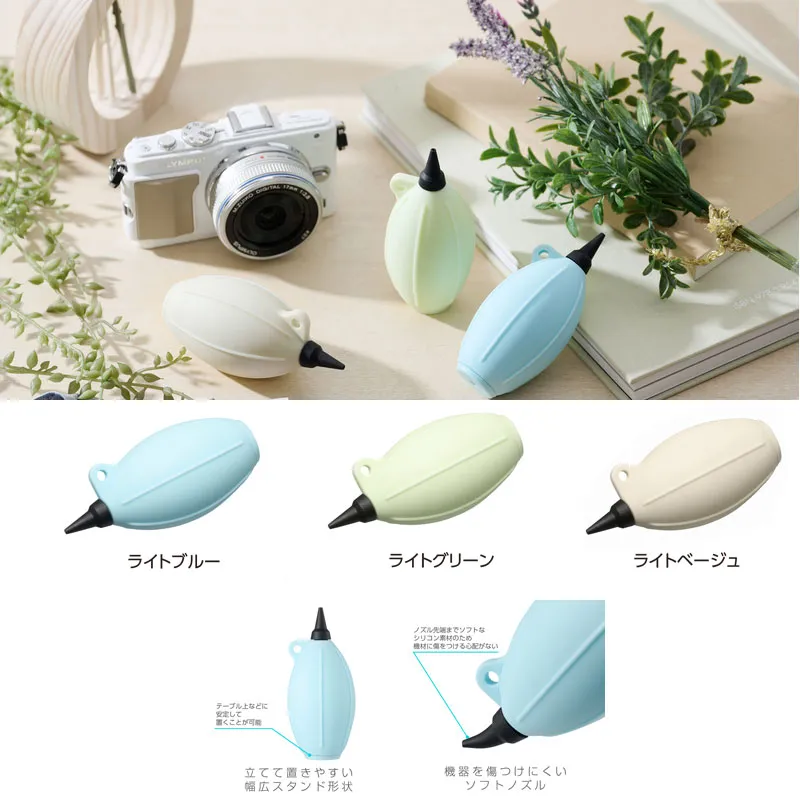 レンズやカメラ、OA機器などのクリーニングに適した小型シリコン製ブロアー。ミニポンプとショートノズルを組み合わせた携帯性の高い仕様。ゴミを狙いやすい、短く先端が細いノズルを採用。女性や手が小さめな方でも扱いやすい小型タイプです。