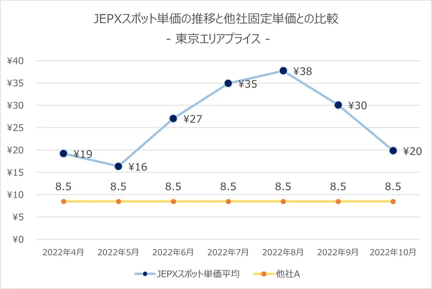 JEPXスポット単価・他社固定単価比較