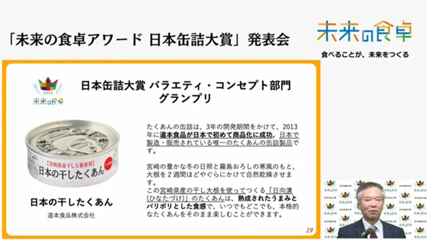 一般社団法人 未来の食卓(東京都港区西新橋、代表理事:山田 まさる、以下、未来の食卓)は、2022年5月に創設した「未来の食卓アワード」の第一弾として日本缶詰大賞を開催いたしました。