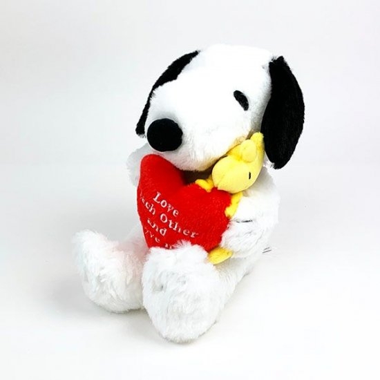 ハートをギュッと抱きしめているスヌーピーもオススメ!スヌーピー×ハートの組み合わせは王道でありながら、人気です。ハートには英語の刺しゅうがされています。ハートのデザインは、お祝いにプレゼントしても良さそうですよね。