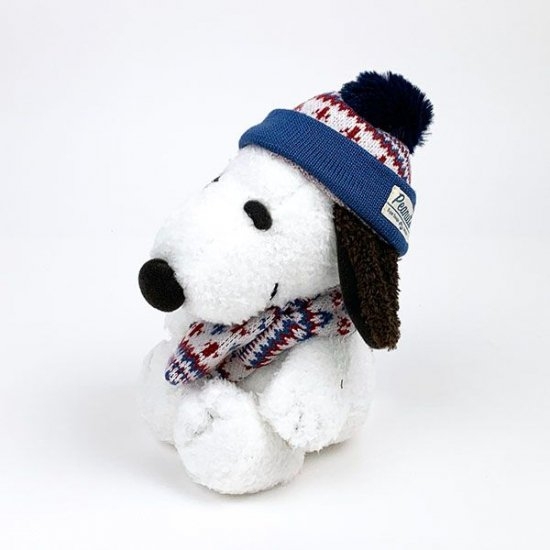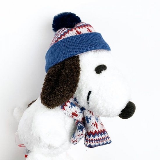 こちらはウィンターコスチュームのスヌーピー。ジャガードニットのあったかマフラーとニット帽で冬のコーディネイトを楽しむスヌーピーです。オシャレさんですね♪インテリアに季節感を出したい場合はこちらのぬいぐるみがピッタリ!