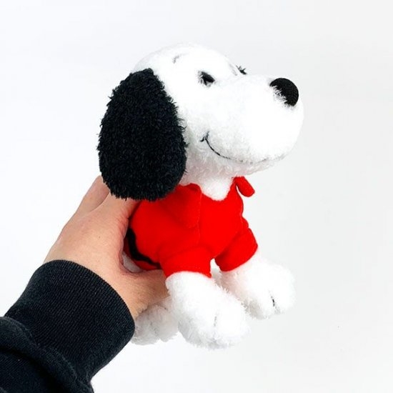 スヌーピー本体はふわふわ。ニットのアイテムも触ってみてください♪