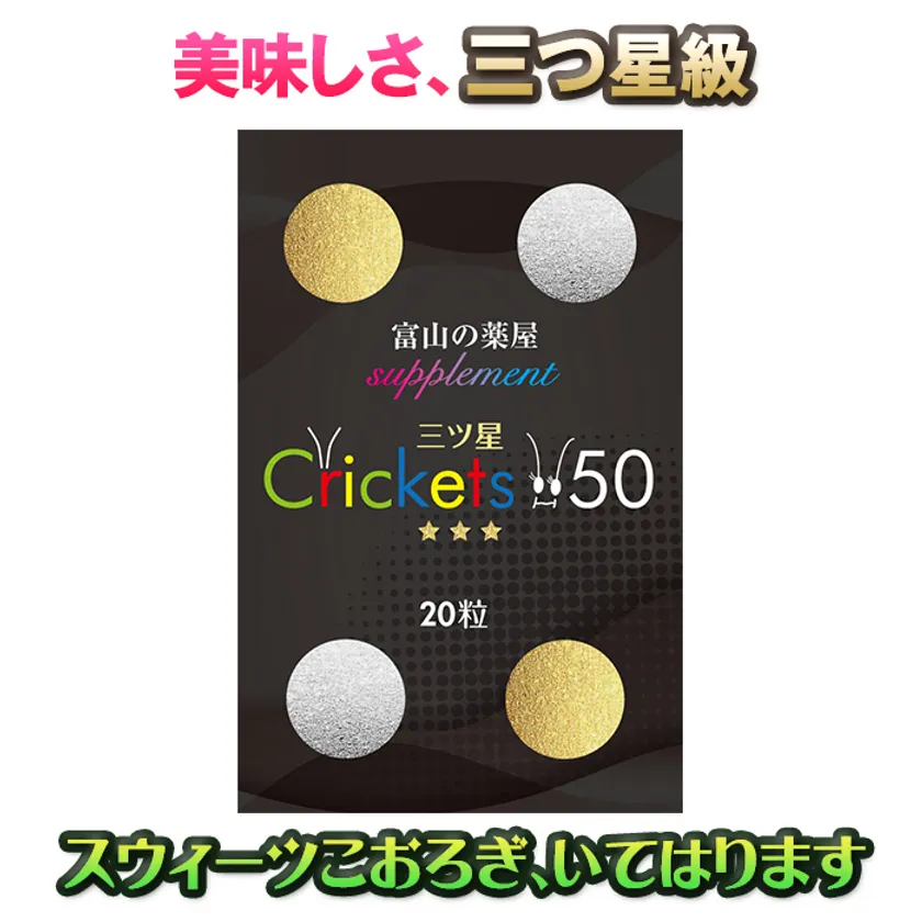 高い栄養価を誇るコオロギのスイーツサプリメント『三ツ星☆☆☆Crickets50』