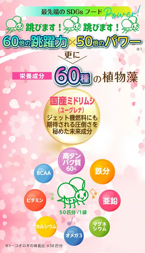たんぱく質以外にも豊富な栄養素を持つコオロギに加えてミドリムシも配合したサプリメントです