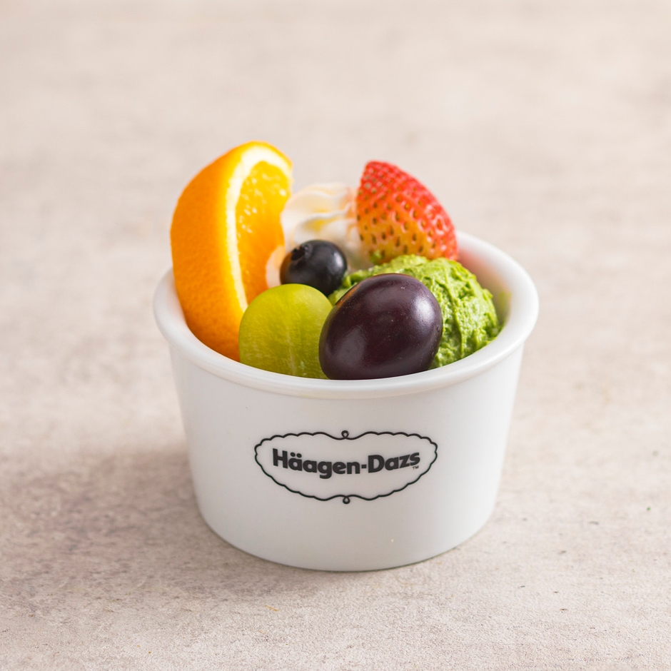 ハーゲンダッツグリーンティーに彩り鮮やかなフルーツをトッピングしました。