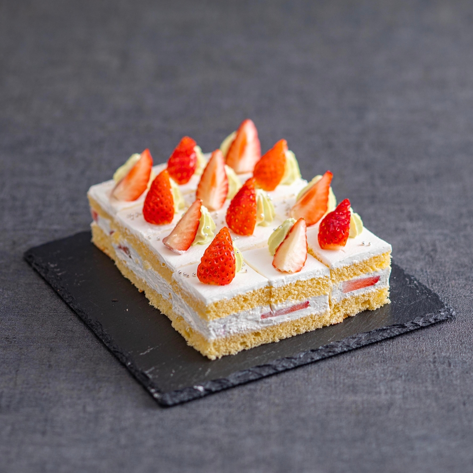 ふわふわのスポンジにホイップクリームと、甘酸っぱいいちごをサンドした定番のショートケーキです。