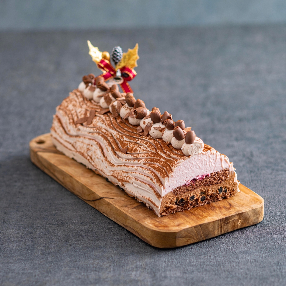 甘酸っぱいベリームースをクリスマスにぴったりのブッシュ・ド・ノエルに。