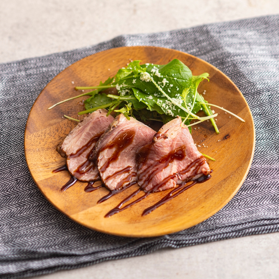 甘みのある脂が特長の栗豚を低温でじっくりと焼き上げたローストポーク。