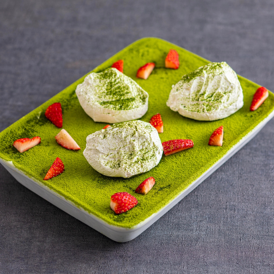 濃厚なティラミスクリームと香り高い八女抹茶を楽しむケーキ。
