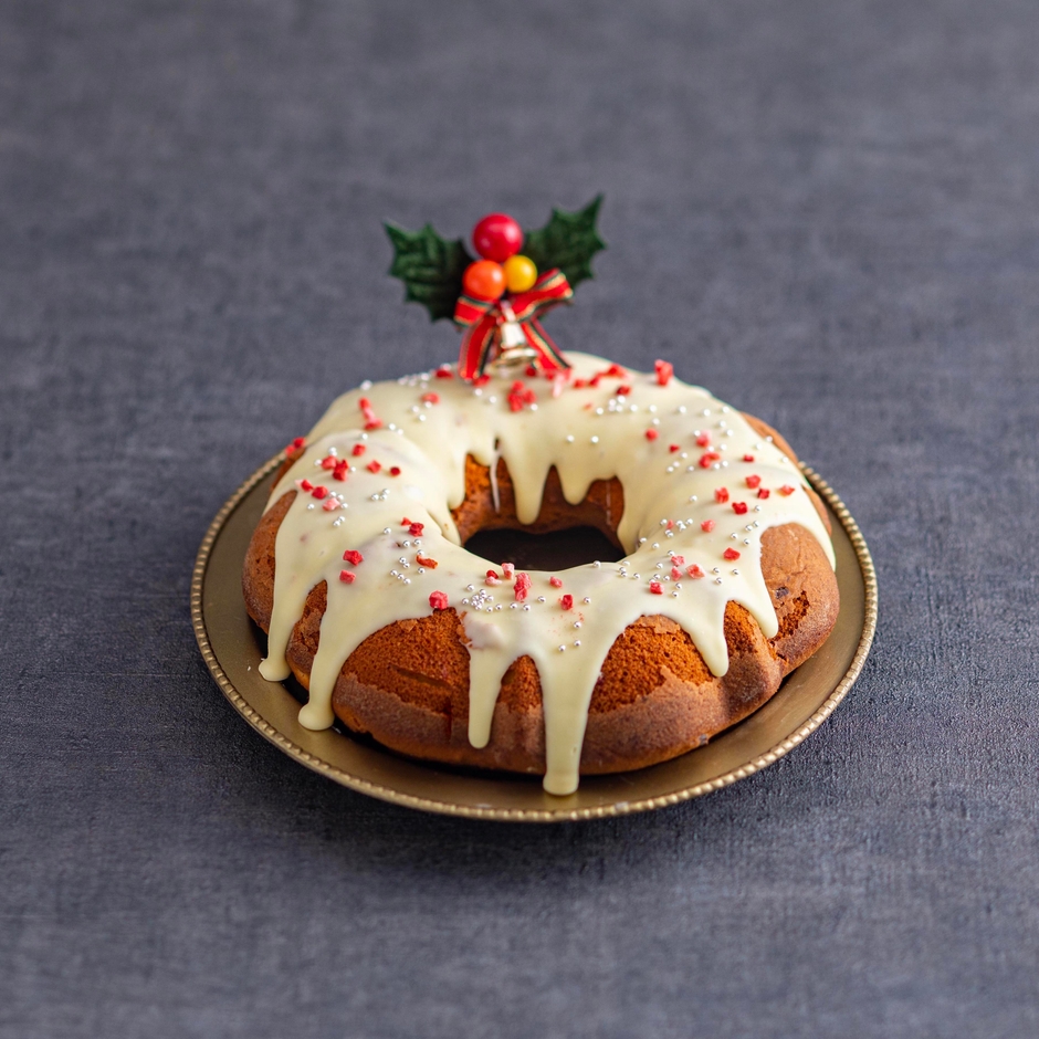 フランスの伝統菓子「パンドジェンヌ」にホワイトチョコレートをかけ、クリスマス仕様にアレンジしました。