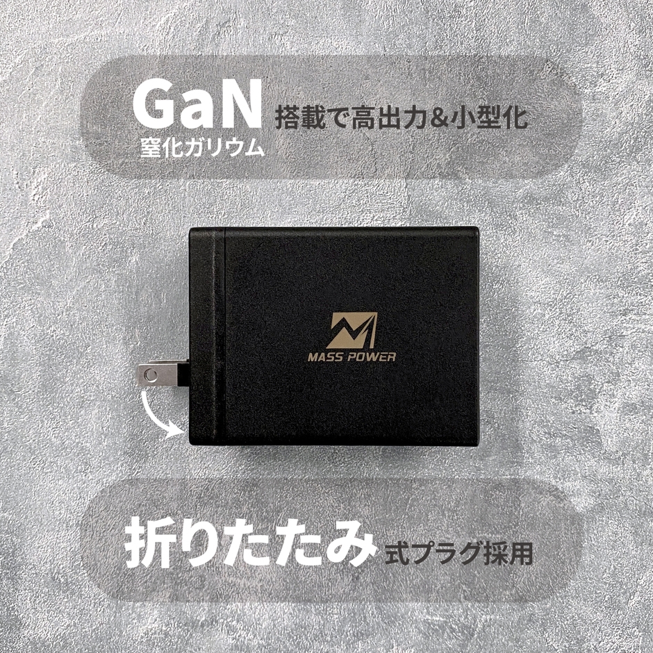ティ・アール・エイ株式会社(本社:大阪市 代表取締役:東 享)は、MASSPOWERブランドのACアダプターを取り扱い開始しました。Power Delivery 100W対応で4台同時充電可能。窒化ガリウム(GaN)により、発熱抑制と本体サイズのコンパクト化を実現しました。