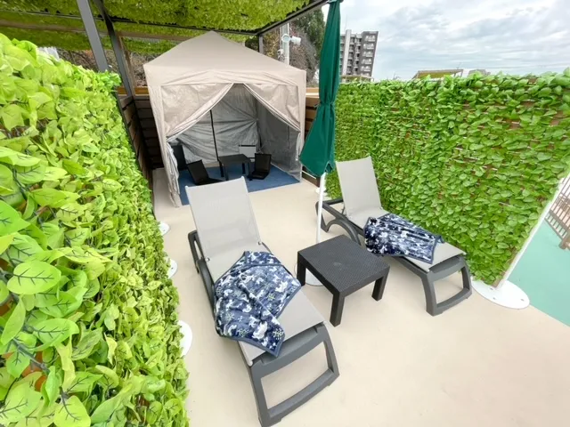 展望抜群の2階デッキにて、自分だけの温かいくつろぎスペースを確保できます。スケートで疲れた足を伸ばしてのんびり休めます。