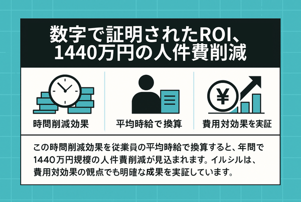 この時間削減効果を従業員の平均時給で換算すると、年間で1440万円規模の人件費削減が見込まれます。DX推進の評価において最も注目される「費用対効果」の観点でも、「イルシル」は明確な成果を実証しています。