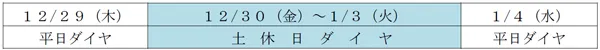 年末年始のダイヤについて