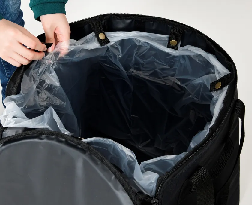 そこで当社は、運搬時の破損を防ぐための約8mmのクッション材と、万一、灯油が漏れても安心な着脱式トレーを採用し、大型開閉仕様で灯油ストーブの出し入れを簡単にした「ストーブバッグ」を発売いたします。MとLの2サイズ展開で、Lサイズは、約幅460×奥行460×高さ598mmの大型灯油ストーブも手軽に持ち運びが可能です。また、本体内側と着脱式トレーは、EVA素材(※1)でお手入れがしやすく、灯油ストーブ使用中は、ダストボックスとして有効活用できるよう、ダストボックス用フックを付けて利便性を向上させました。