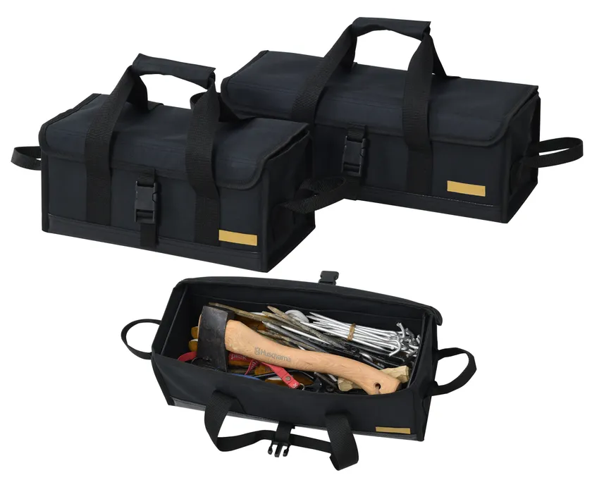 さらに、「ストーブバッグ」に加え、仕切りが面ファスナーで調整でき、約8mmのクッション材で壊れやすいランタンや調理器具などを入れるのに便利な「マルチギアコンテナ」2サイズと、芯材が丈夫でペグ入れに適した「マルチツールボックス」2サイズも、同時発売いたします。