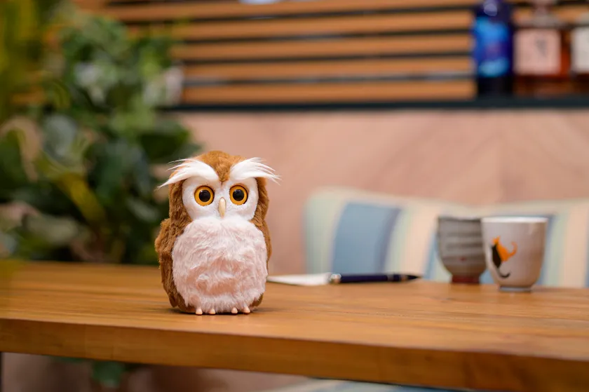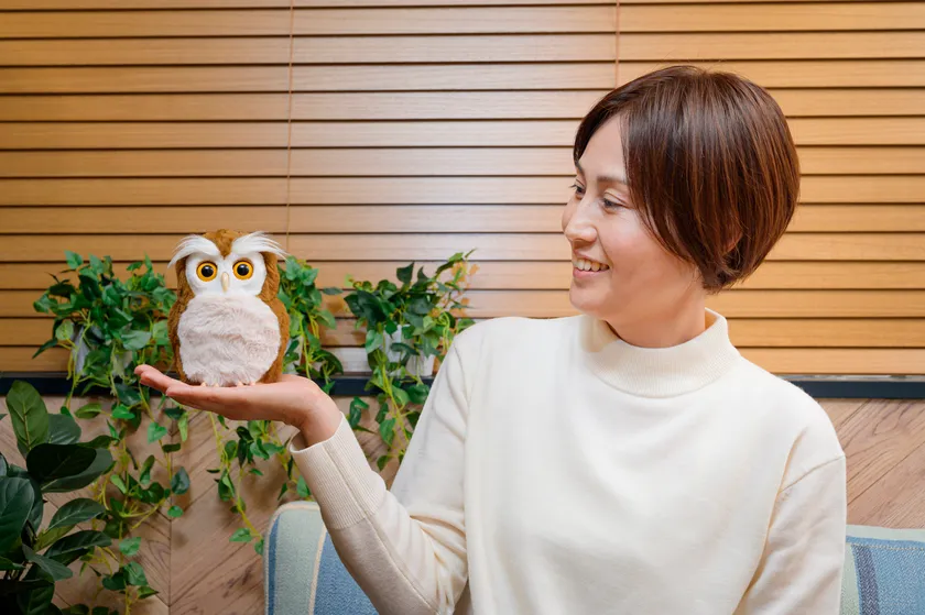 見た目も触り心地も本物そっくりで愛らしい 手のひらサイズのペットロボット 開運アドバイザー「ハッピーふくろう」 2023年1月11日(水)発売