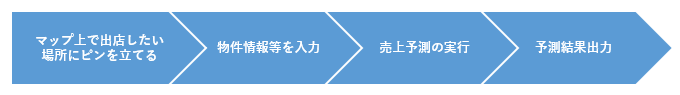 出店を検討している場所で開業した際の月商を予測します。業態や出店店舗の階数など、店舗の詳細を予め設定した上で、高精度な予測が可能。
