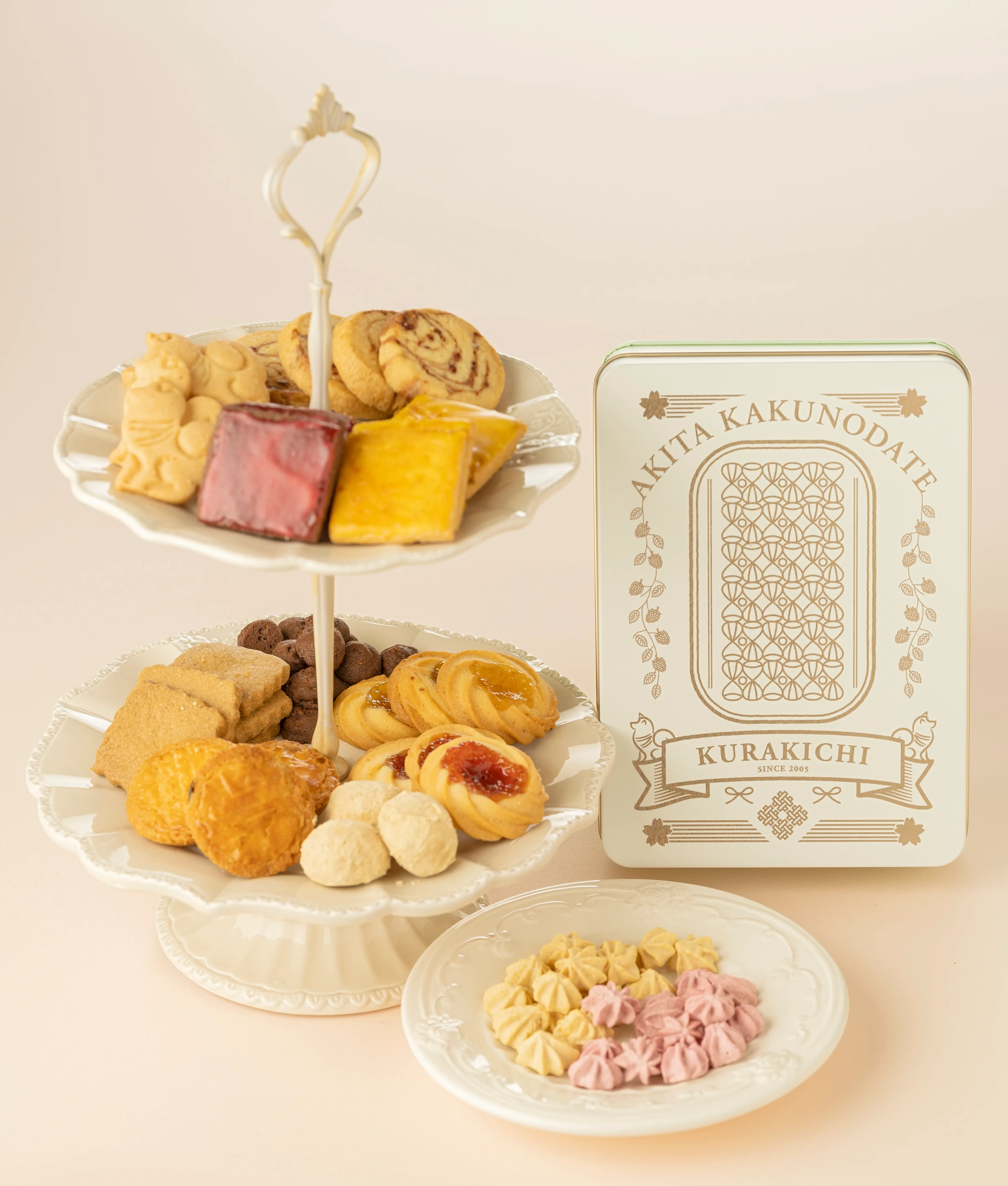秋田の厳選素材に真摯に向き合い、素材から職人が一つひとつ丁寧にクッキー缶に仕立てました。秋田犬をモチーフにしたクッキーや、「あきた フランボワーズ ミニョンヌ」「コアニスイーツホオズキ」など秋田の素材を使ったクッキーを詰めた秋田の魅力あふれるクッキー缶です。