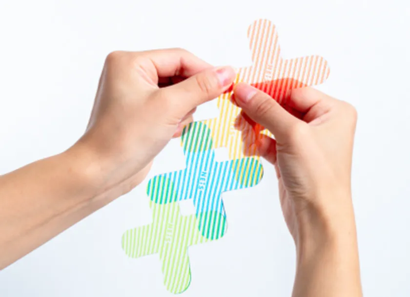 HUMOFIT(R)は、体温で温めると柔らかくなり、自由に曲げることができ、ピース同士がくっつきます。この特性をいかして、脳科学者でネイスのアドバイザーでもある茂木健一郎氏の監修のもと、温もりが集中力を育む玩具として開発されたのが「キャンディぷらす(R)」です。