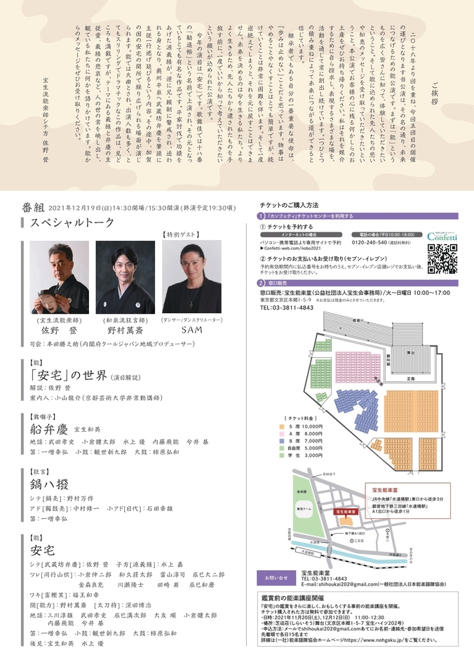 詳細は(一社)能楽謡隊協会ホームページをご覧ください。