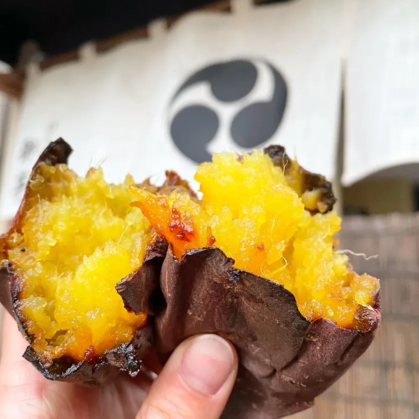 腰の高さまである巨大な壺の中で、炭火でじっくりと時間をかけて焼き上げた、こだわりの焼き芋。とろけるような甘さと食感をお楽しみください。