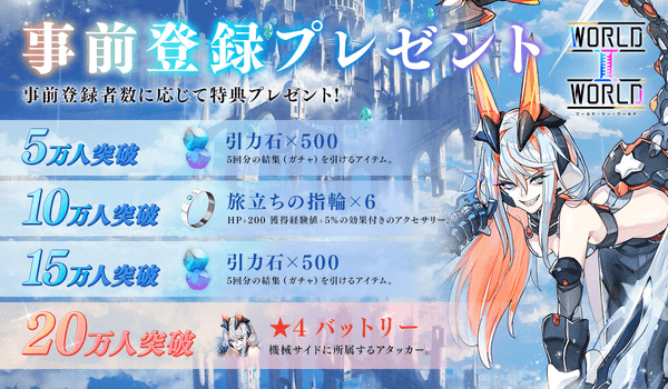 本日より、Google Playおよびメールでの事前登録を開始しています。事前登録者数に応じて、ゲーム開始時に獲得できるアイテムが増加していきます。