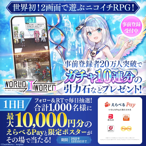 株式会社アニプレックス(本社:東京都千代田区 代表取締役 岩上敦宏 以下アニプレックス)は、今冬配信予定のスマートフォン向けニコイチRPG『World Ⅱ World(ワールド・ツー・ワールド)』(iOS/Android)に関して、キービジュアルを公開しました。また、事前登録をGoogle Playおよびメールにて開始いたしましたので合わせてお知らせします。