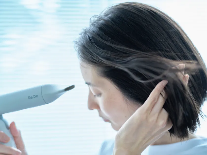 そのブランドの姿勢を体現する製品として、この度の「Re・De Hairdry」を開発いたしました。業界トップクラスの風速を誇るドライヤーでありながら、頭皮と髪を健やかに保つヘアケア性能を備え、さらに習慣的に使うものだからこそ“使い心地”を追求し、長く使っても疲れない圧倒的な軽さと、誰もが使いこなせるようなシンプルなユーザーインターフェースにこだわりました。「Re・De」が生み出した“新しいヘアドライのかたち”を是非体験してみてください。