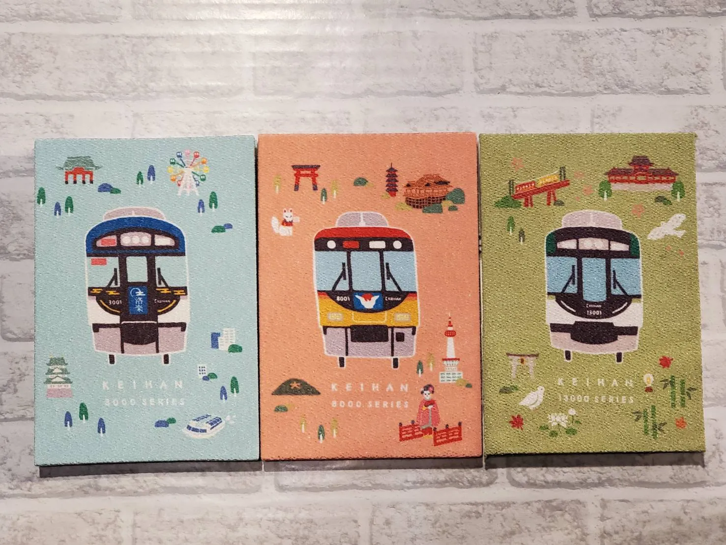 「3000系車両・大阪エリア風景」「8000系車両・京都エリア風景」「13000系車両・石清水八幡宮」の全3デザインを販売します。
