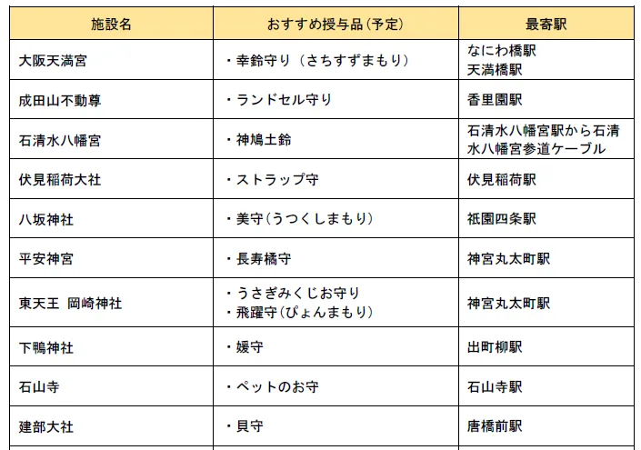 京阪電車で沿線の社寺と施設をめぐるデジタルスタンプラリーとして、12月31日(土)~2023年1月15日(日)の期間で開催します。スタンプポイントにおけるおすすめの授与品をご紹介するほか、スタンプポイントをめぐりデジタルスタンプを集めると、その数に応じて素敵な賞品を抽選でプレゼントします。
