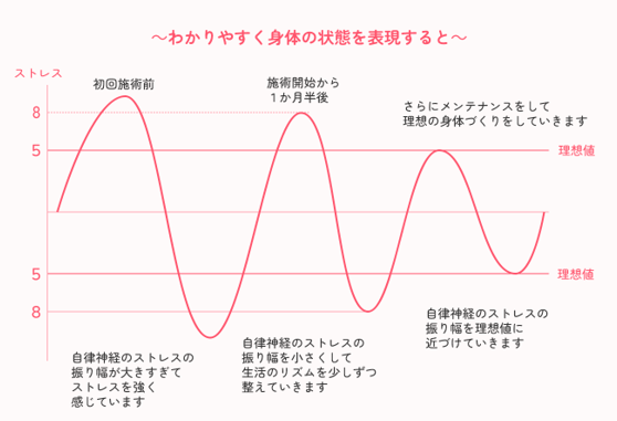 なぜなら自律神経のお悩み症状は、自分でコントロールできない神経なのでしっかりとした治療期間を考えて施術が必要になります。