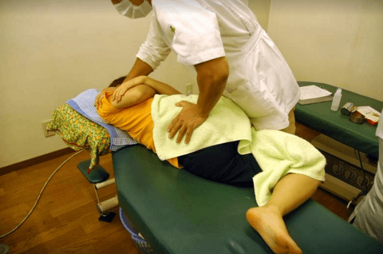 整体カイロプラクティックの技術である骨盤矯正・骨盤調整をしている所。
