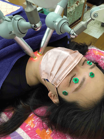 自律神経を整える特殊機器スーパーライザー。交感神経と副交感神経のバランスを整えながらお灸をします。