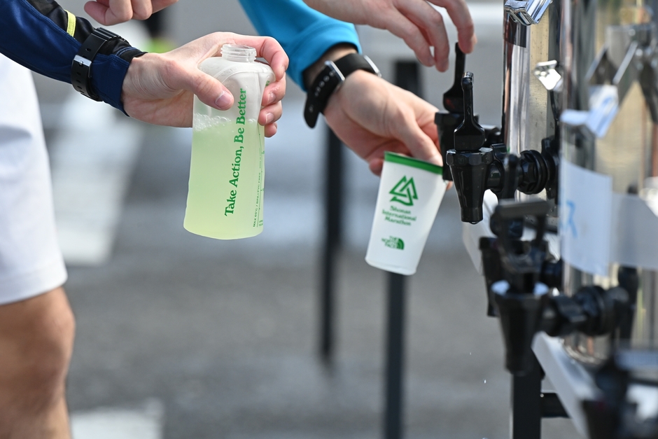 そこで、マラソン大会の新たなスタイルとして、ランナーは全員マイボトル・マイカップを持参するというルールを設定。補水は、コース上に200ヶ所以上平均200m置きに設置された2,500個以上のジャグ(給水器)で行います。これはペットボトルやプラカップゴミを出さないマラソン大会で、環境配慮型のイベントスタイルとしては世界初の挑戦となります。