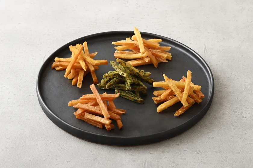 かわいい色鮮やかなパッケージとバラエティに富んだフレーバーが特徴の芋けんぴです。定番のプレーンだけでなく、キャラメル、シナモン、青のり、ゆずなど、他ではなかなか出会うことができない珍しいお味を取り揃えております。オリジナルのカラフルパッケージとギフト箱もご用意しておりますので、お手土産にもぴったりです。